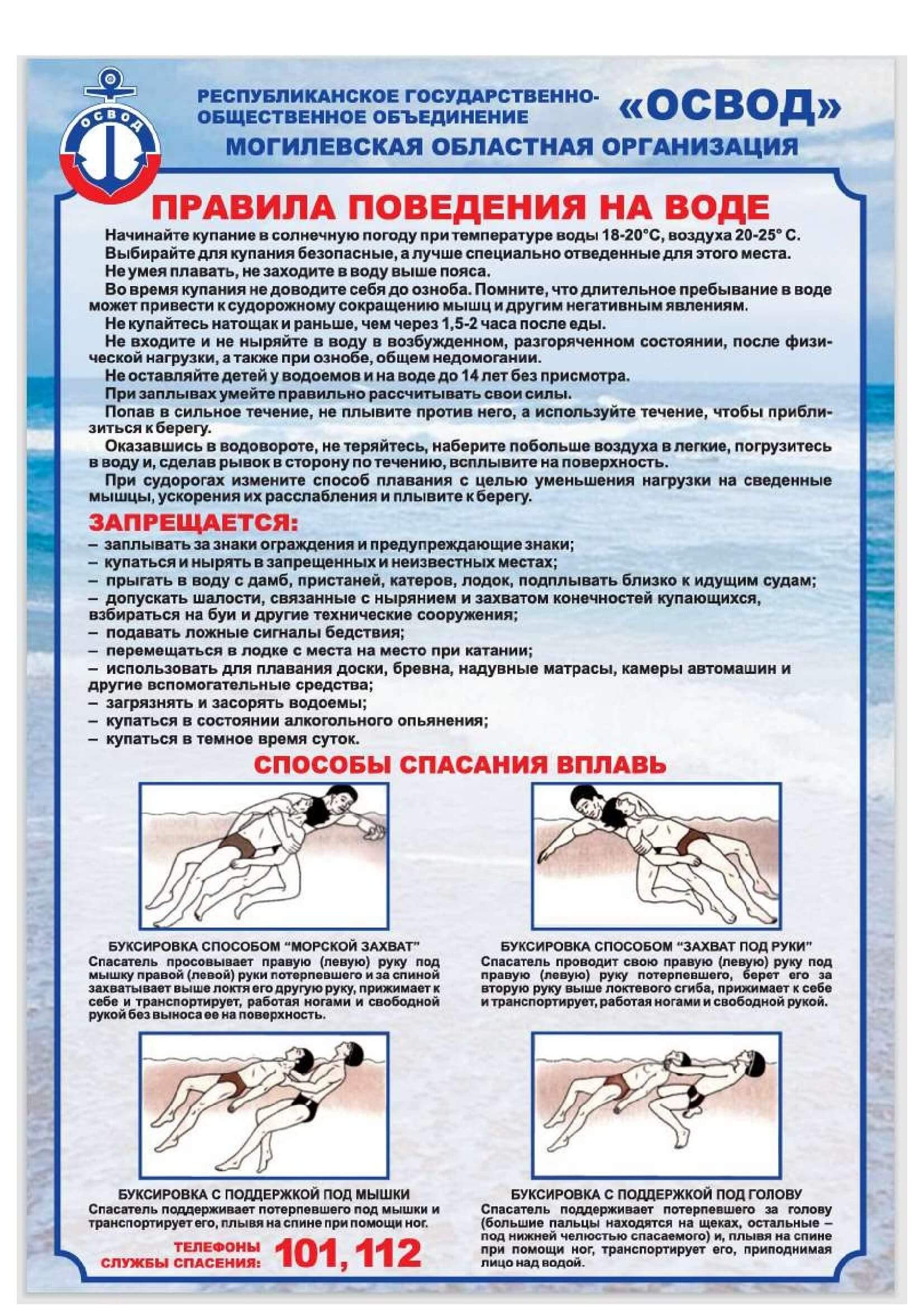 • необходимо помнить, что длительное пребывание в воде может привести к судорожному сокращению мышц.